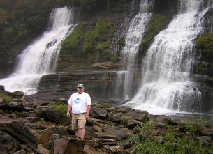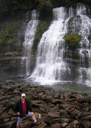 I camped at Fall Creek Falls and drove the 25 miles over to Rock Island. The scenic beauty of this wooded park is dominated by the Great Falls of the Caney Fork River - an imposing limestone gorge. The Collins and Caney Fork River are dammed for power generation. The layered rock that forms the reservoir has leaks between the rock layers. The cracks are large enough to allow a tremendous amount of water to come through creating a magnificent waterfall. At the bottom, a large wave forms from the water flow that kayakers call one of the best "surfing" waves in the country (a dangerous Class 4 rapid).